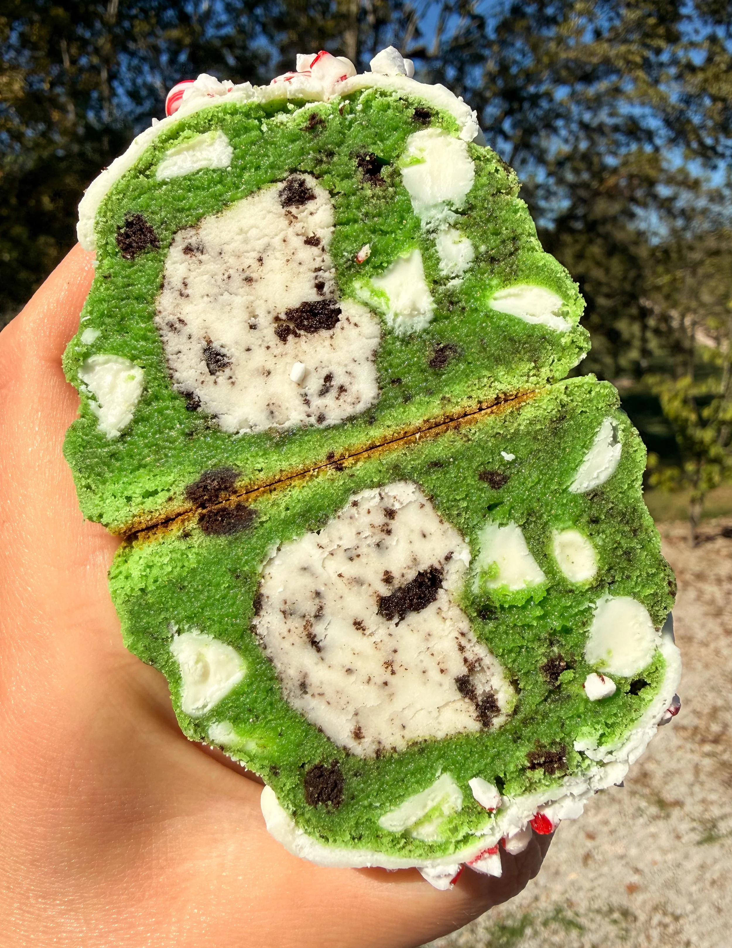 A bold, red (or blue) cookie exploding with Oreo, Biscoff, and Chips Ahoy chunks, all wrapped around a creamy cookie-dough fudge center. Soft, chewy, and wildly loaded, this fan-favorite is the ultimate cookie-lover’s dream.