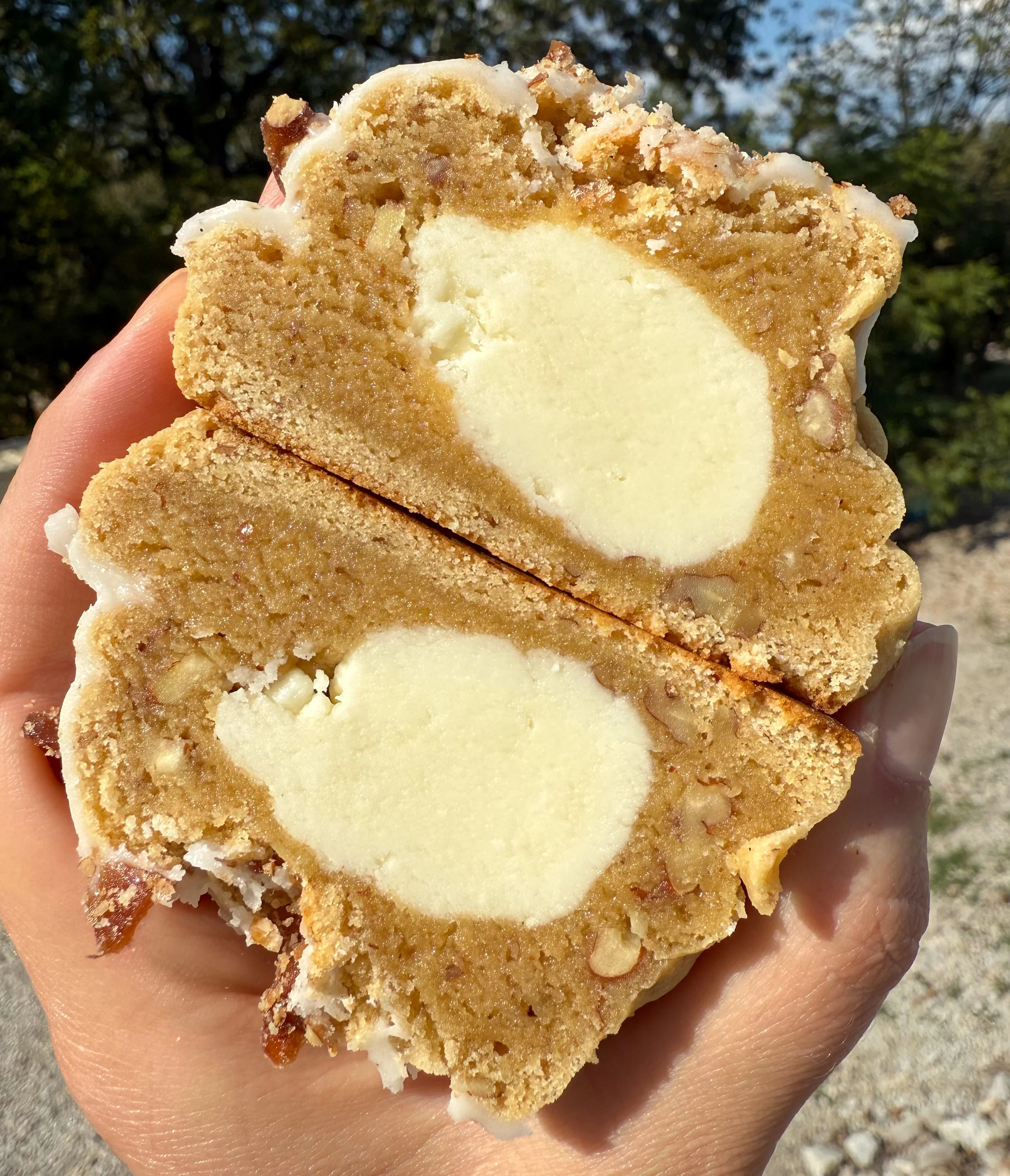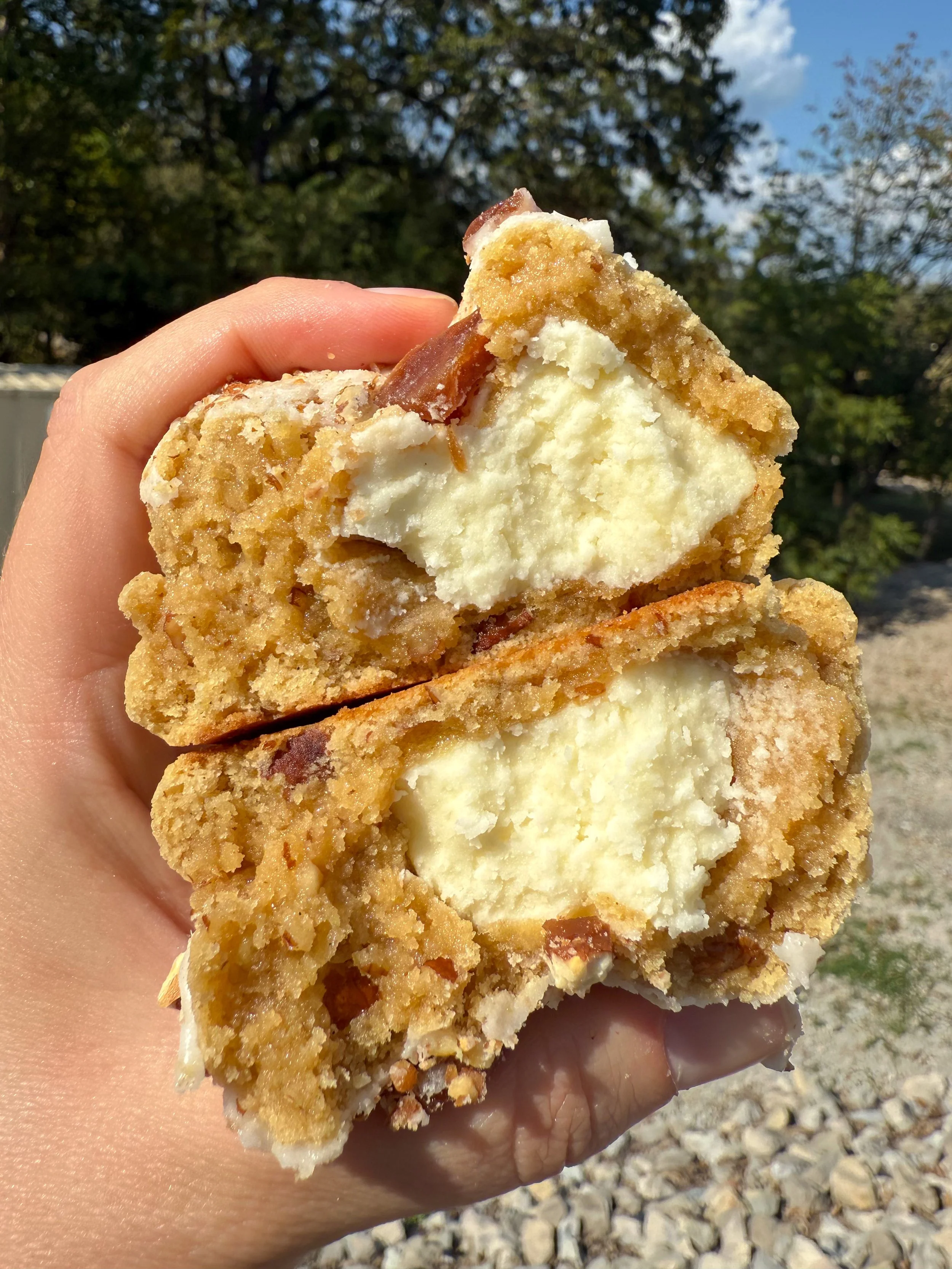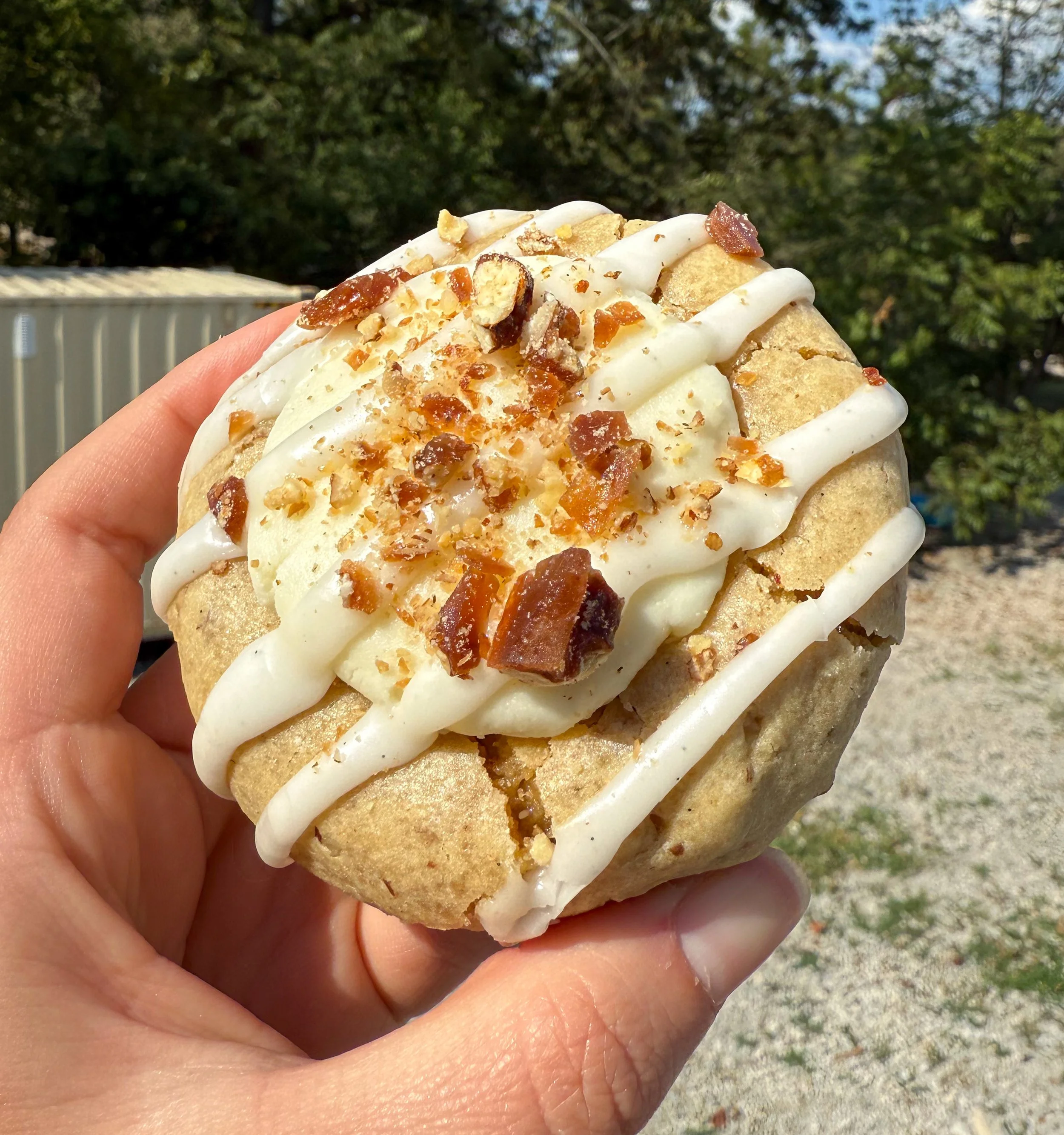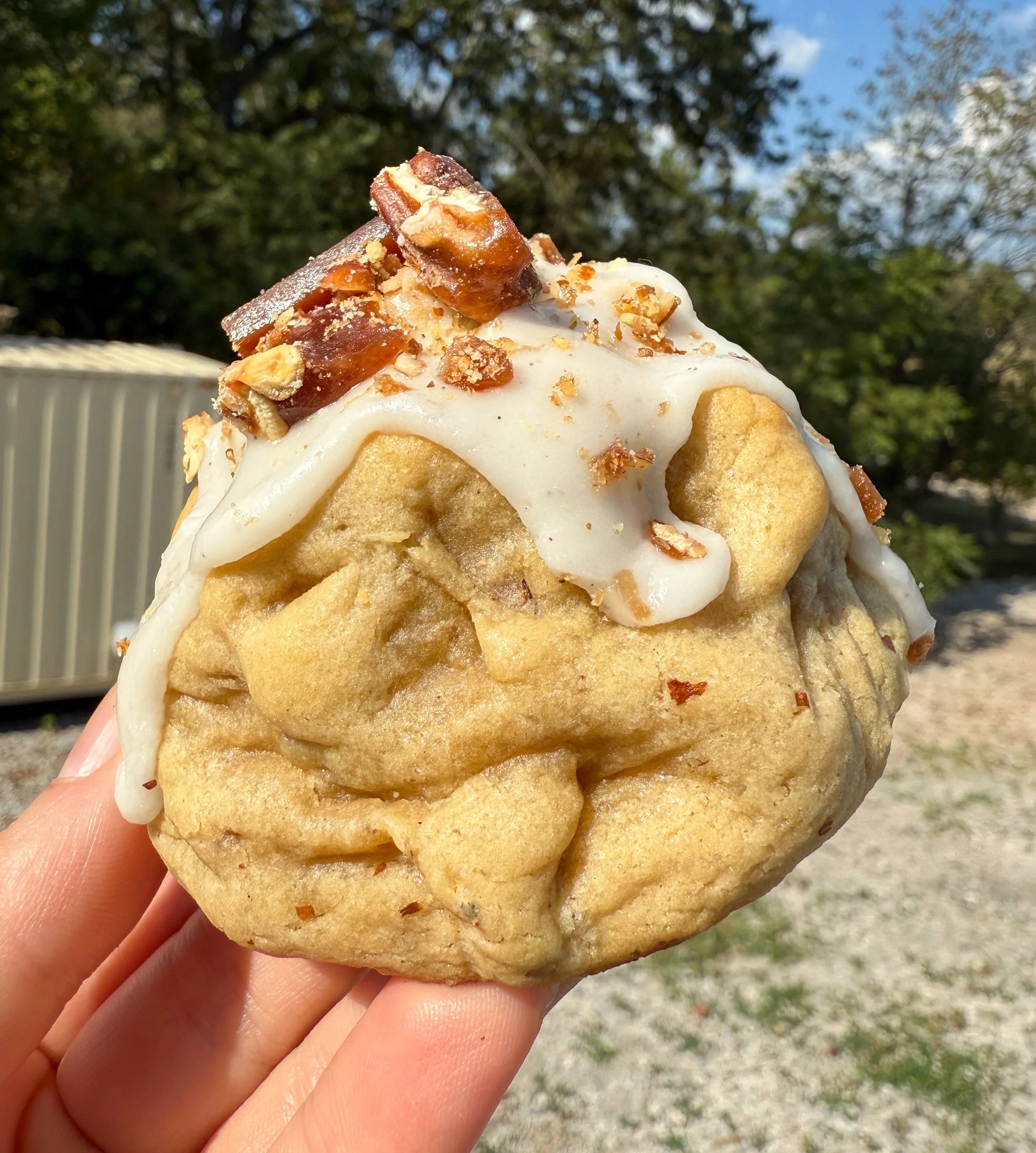 Bass Pro Shops Cookie- A delicious brown sugar cookie dough, with maple brown sugar oatmeal, a little bit of cinnamon, and crushed brown sugar pop tarts. Topped off with a brown sugar glaze. Tastes exactly like when you step into a Bass Pro Shops store, and that wonderful smell hits you!